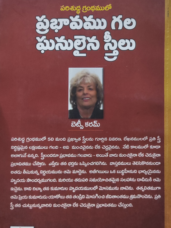 పరిశుద్ధ గ్రంథములో 50 మంది ప్రఖ్యాత స్త్రీలను గూర్చిన వివరణ. లేఖనములలో ప్రతి స్త్రీ నిర్ధిష్టమైన లక్షణములు గలది – అవి మంచివైనను లేక చెడ్డవైనను. నేటి కాలములో కూడా అలాగునే ఉన్నది. స్త్రీలందరూ ప్రభావము గలవారు – అయితే వారు మంచికైనా లేక చెడుకైనా ప్రభావితము చేస్తారు. ఎస్తేరు తన భర్తను ఒప్పించగలిగెను. వాస్తవములు తెలిసికొనకుండా అతడు తీసుకున్న నిర్ణయమును ఆమె మార్చెను. అబీగయిలు ఒక బుద్ధిహీనుని భార్యయైనను హృదయ సౌందర్యముగలది. మరియు తదుపరి సమయోచితమైన సలహాను దావీదుకి ఆమె ఇచ్చెను. కాని రిబ్కా తన కుమారుల హృదయములలో మోసమును నాటెను. తత్ఫలితముగా ఆమె ప్రియ కుమారుడు యాకోబు తన తండ్రిని మోసగించి జీవితాంతము శ్రమనొందెను. ప్రతి స్త్రీ తన చుట్టునున్నవారిని మంచికైనా లేక చెడుకైనా ప్రభావితము చేస్తుంది.